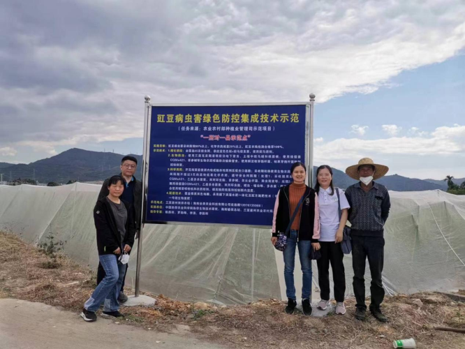 三亚市崖州区是海南省冬季瓜菜主产区,崖州果蔬综合批发市场是琼南最大的冬季瓜菜交易市场,豇豆农药残留超标一直是当地政府和种植户最为头痛的问题。近年来,农业农村部不断加大对海南豇豆质量安全的检查。为了更好解决农残超标问题,从源头上为食品安全构筑起一道坚固的防线,生物所积极与三亚市政府沟通对接,结合三亚市热带农业产业技术发展需求,积极引入科技成果到当地落地转化,与政府和种植户一起共建示范基地,把科技成果从实验室送到田间地头,服务地方政府和豇豆产业发展,推动“三品一标”和乡村振兴工作。
