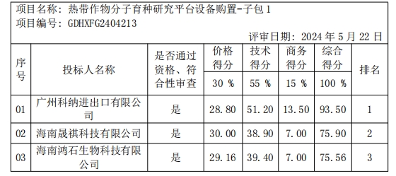 2.各有关当事人对中标结果有异议的,可以在中标公告发布之日起7个工作日内以书面形式向广东和信招标代理有限公司或中国热带农业科学院热带生物技术研究所提出质疑,逾期将依法不予受理。