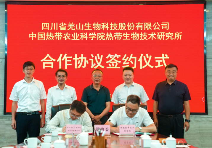 成果转化处处长廖子荣,生物所副所长吴波,品资所、试验场相关领导以及四川省羌山生物科技股份有限公司总工程师张鑫羲等7人参加了签约仪式。